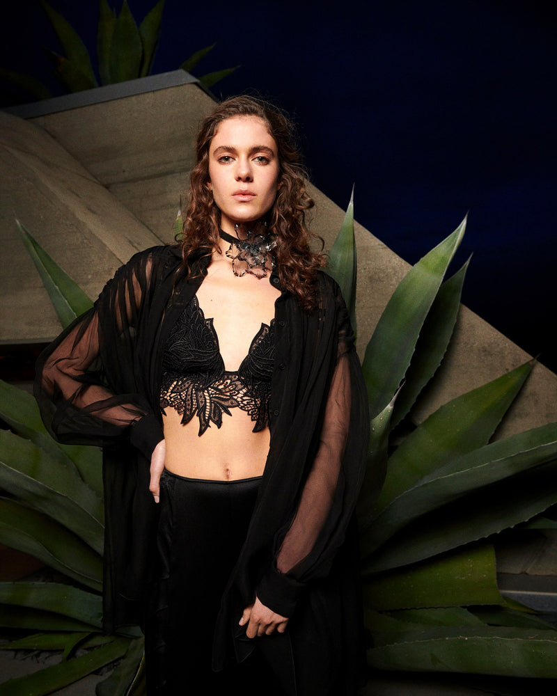 Leichter, luftiger Chiffon und glänzender Satin laden ein, in eine Atmosphäre geheimnisvoller und sinnlicher Eleganz einzutauchen.