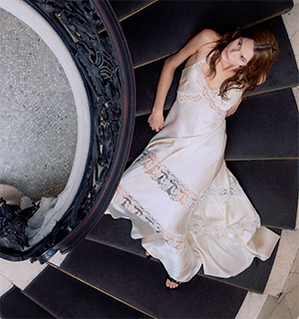 The lightness of chiffon, the richness of embroidery and lace, the femininity of the slip dress, and the refined and sensual lines are the protagonists of her collections.